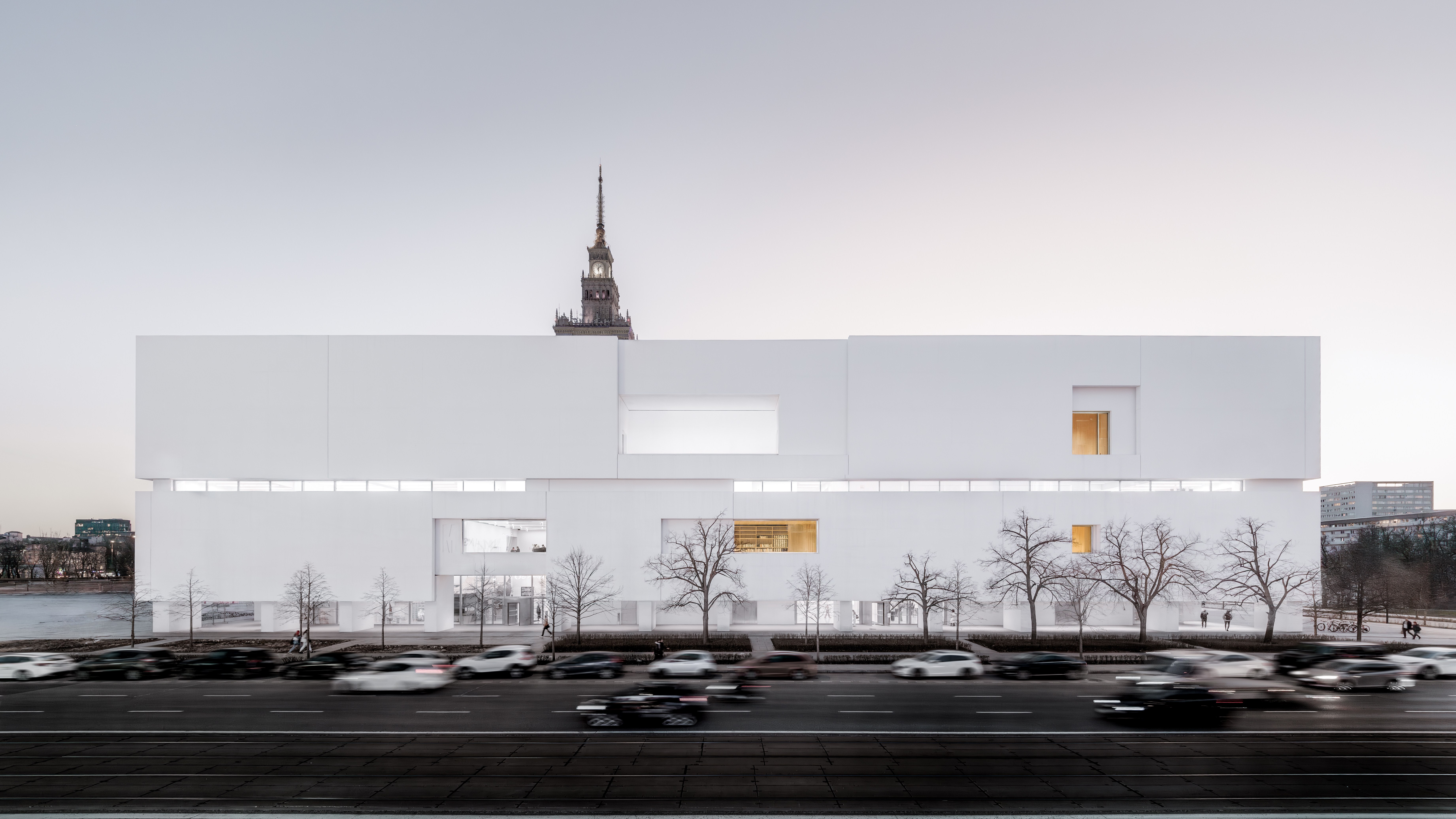 The museum and the future TR Warszawa Theatre share a cultural space, surrounded by recently planted honey locust trees. It is a daring, long-lasting venue for modern art and public life in the capital of Poland.