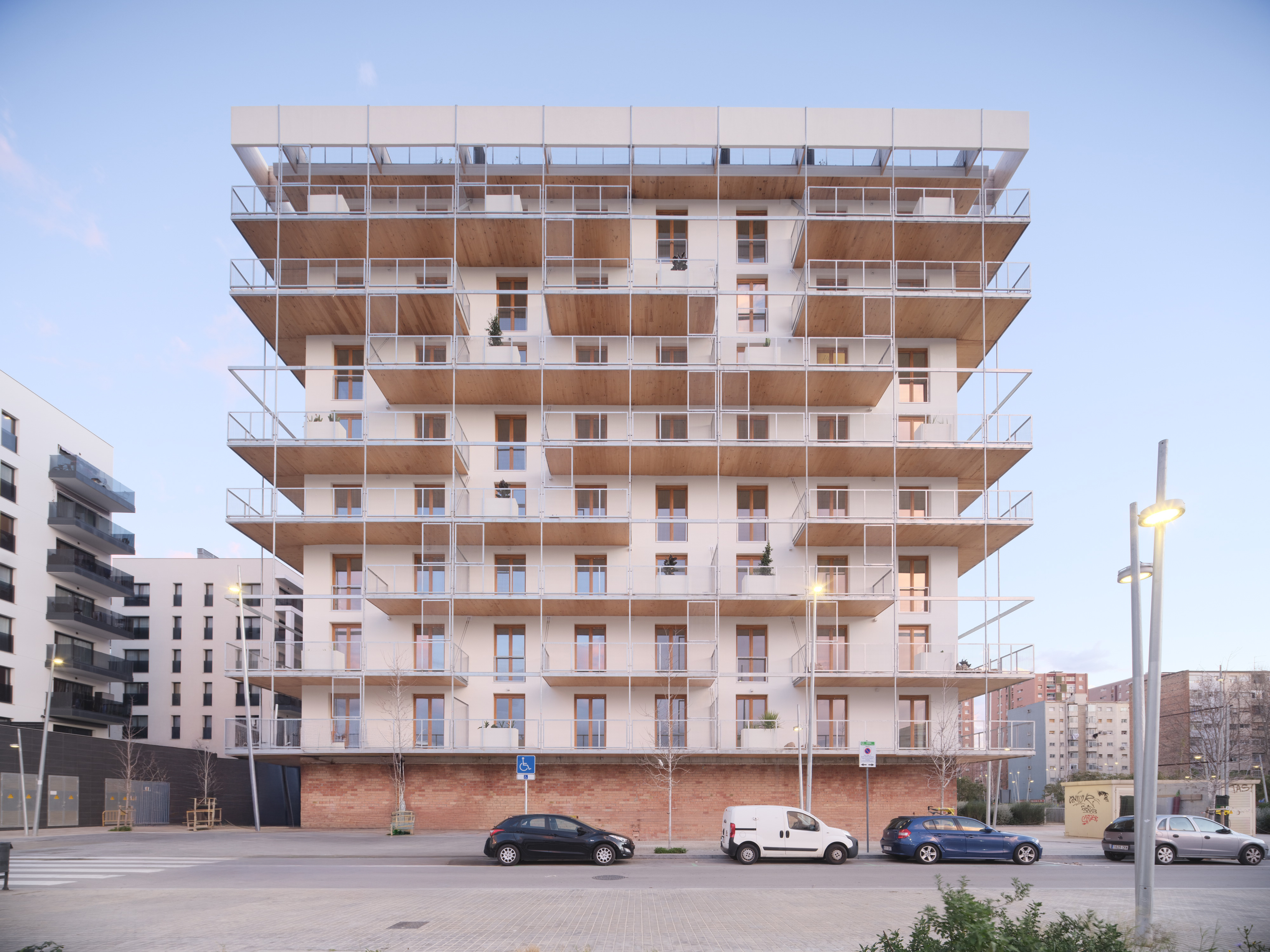Urbanitree is a social housing project of 40 units in Barcelona’s Verneda i La Pau neighborhood, developed by Municipal Institute of Housing and Renovation (IMHAB) in Barcelona, Spain, and designed by Vicente Guallart and Daniel Ibañez. Completed in July 2024, the project was the winning entry in a competition launched during the COVID-19 pandemic, with a focus on rapid, sustainable construction in response to housing and climate challenges.
